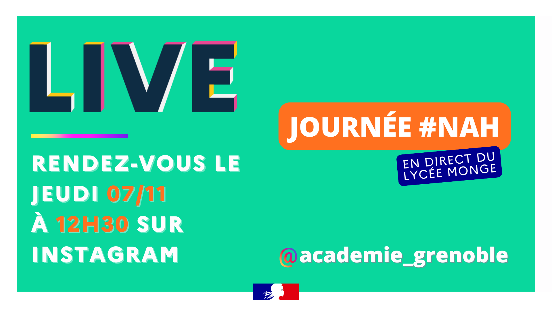 Ce live, destiné aux élèves, sera l'occasion de présenter la journée NAH et les moyens de signalement ; de recevoir des retours d’expériences d’élèves engagés dans la lutte contre le harcèlement et de découvrir comment les élèves ont organisé leurs stands d’information et les activités pour faire vivre cette journée.